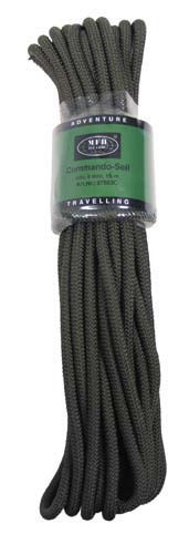 Günstiges robustes Seil, oliv, 9 mm, 15 Meter lang